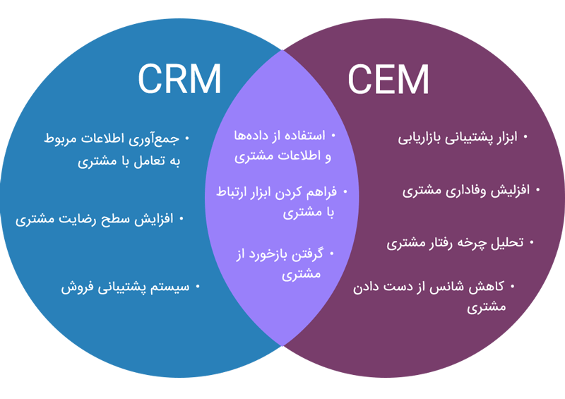 CEM به جای تمرکز بر ابزارهای نرم افزاری که برای کنترل و نظارت مشتریان و کارکنان به کار میرود، تمرکز خود را بر یک استراتژی جامع مشتری محور و ارائه خدمات بهتر مربوط به آن جهت دستیابی به مزیت رقابتی قرار میدهد. تکنولوژی CEM تمرکز را از مدیریت دادهها برداشته و به تعاملات مشتری که در زمان و مکان مشخصی انتقال مییابد اهمیت میدهد تا بتواند تجارب مختص به هر مشتری را بهبود ببخشد. در اینجا کیفیت اطلاعات CRM از کمیت آن ارزش بیشتری پیدا میکند که در نهایت نتایج بهتری را برای اهداف پیش بینی شده رقم خواهد زد. در جایی که سیستمهای CRM در تلاشند تا دادههای مشتری را در زمان و مکانی که میتوانند (برای بهرهمندی از تعامل خود با مشتری) مورد استفاده قرار دهند، CEM تلاش میکند تا تجربهای مثبت برای مشتریان رقم زده به طوریکه مزایای به وجود آمده قابل اندازهگیری و محاسبه باشند. مدیریت تجربه مشتری (CEM)قصد دارد با استفاده از آخرین تکنولوژیها و حرکت بر روی لبه دانش، در هر زمان و مکان به صورت دقیق اطلاعات مشتری در تمامی کانالهای ارتباطی را رصد کرده تا بتواند تجربه خوب و متمایزی را برای او رقم بزند.