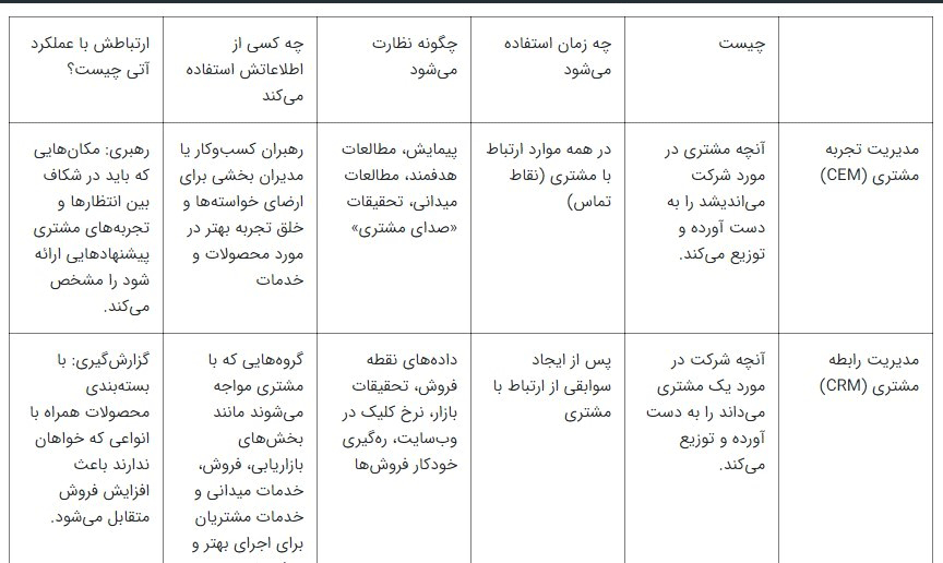 مديريت تجربهي مشتری : مديريت ادراك مشتريان هدف در تمام فرايندهاي تجربه از لحظهي شروع فرايند تا ايجاد برند و وفاداري.
